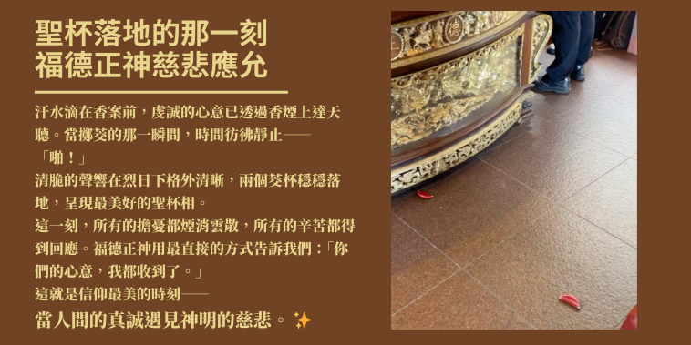 向福德正神擲茭確認,杯落地的那一聲清響——是聖杯!