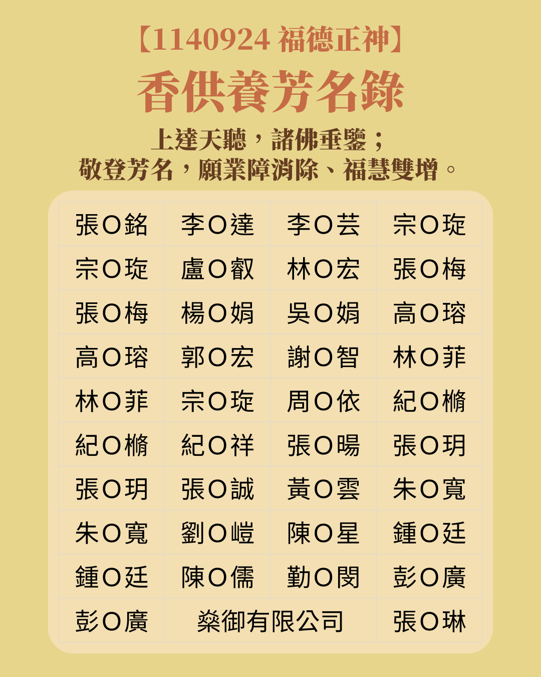 您的名字已刻印在這次香供養的記憶中,您的心願已隨著香煙上達福德正神聖前。