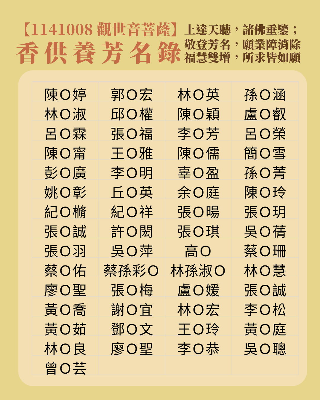 感謝每一位參與10/8接雲寺香供養的善信。您的名字已刻印在這次香供養的記憶中,您的心願已隨著香煙上達菩薩聖前。