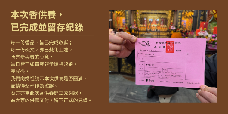 這代表著:我們被信任,可以繼續替信眾,把這份心意好好傳遞。