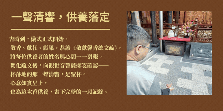 向觀世音菩薩擲筊確認,杯落地的那一聲清響——