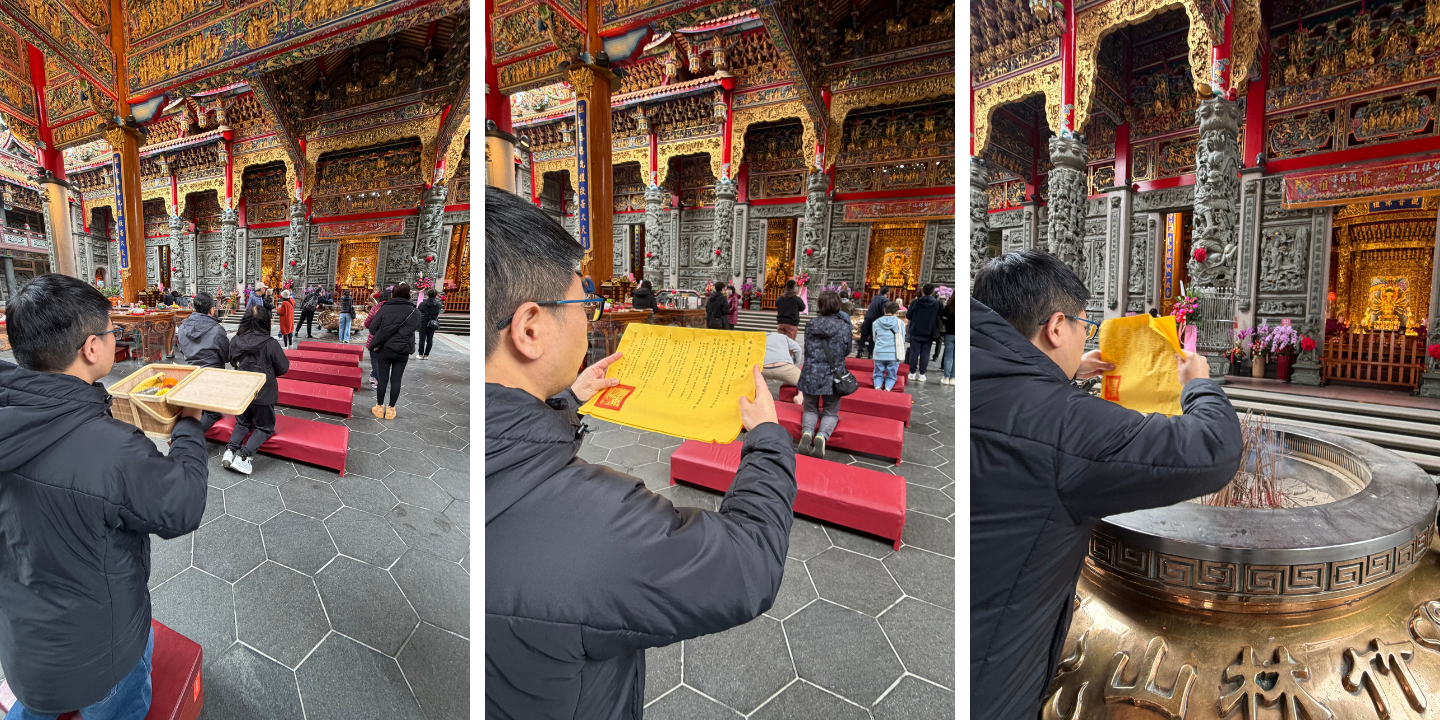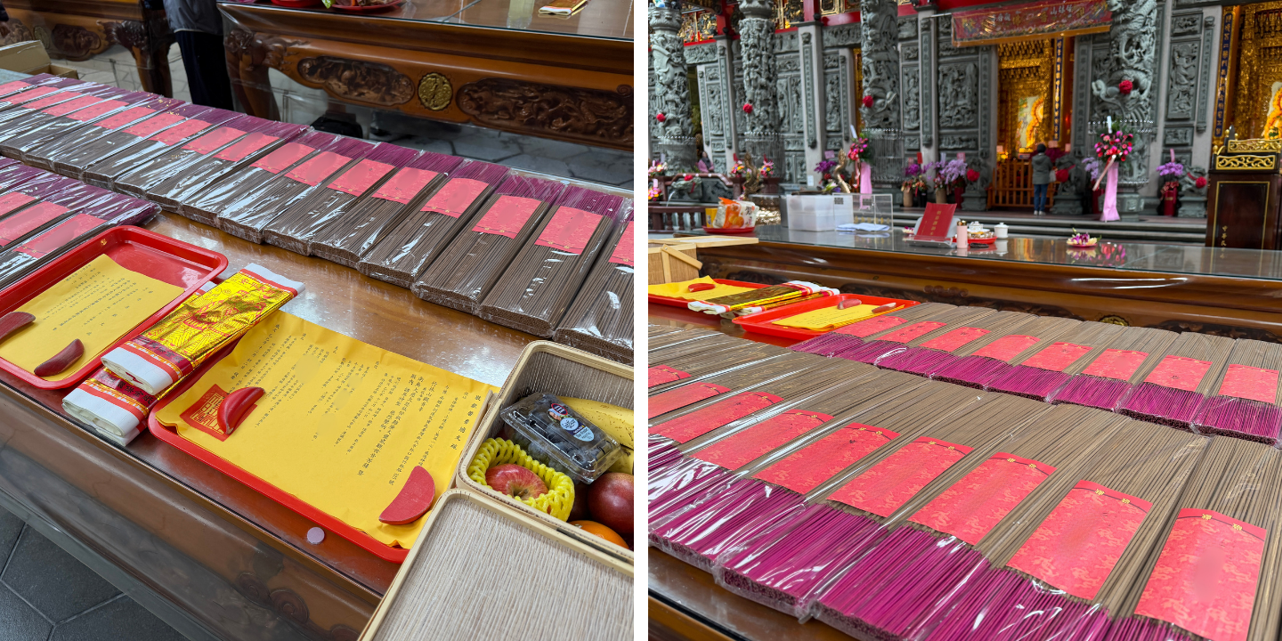 每張照片都要拍得清楚:香品、名條、疏文、觀音背景,一樣都不能少。