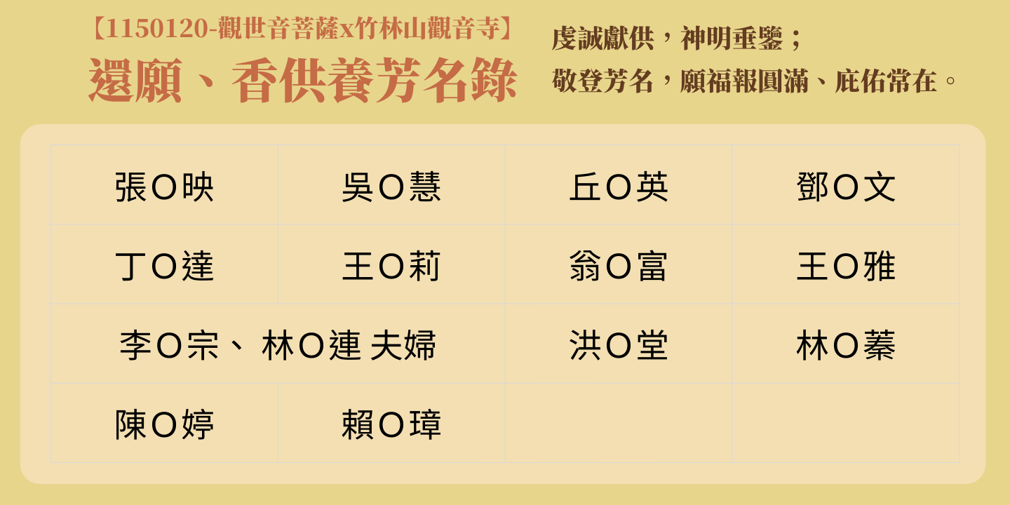 感謝以下善信參與本次還願香供養: