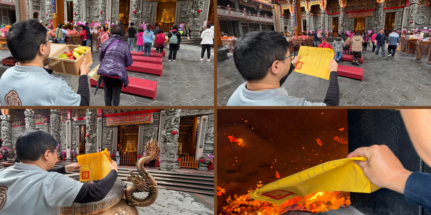 - 🔸 焚化文疏,心願上達天聽 等待神明同意的時間到,把文疏送入金爐。火升起來的時候,還願的那份重量,好像也跟著輕了一些。