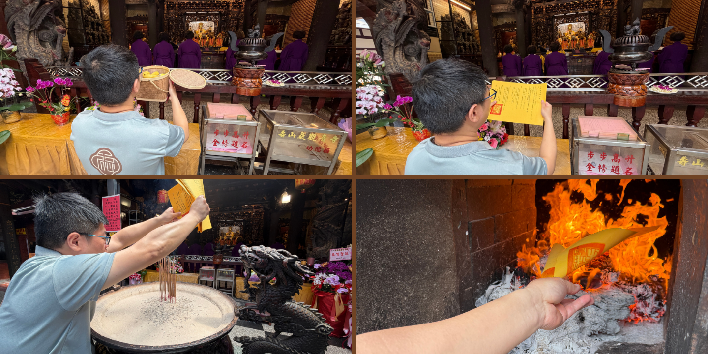文疏送入金爐。火升起來,香煙慢慢往上飄。