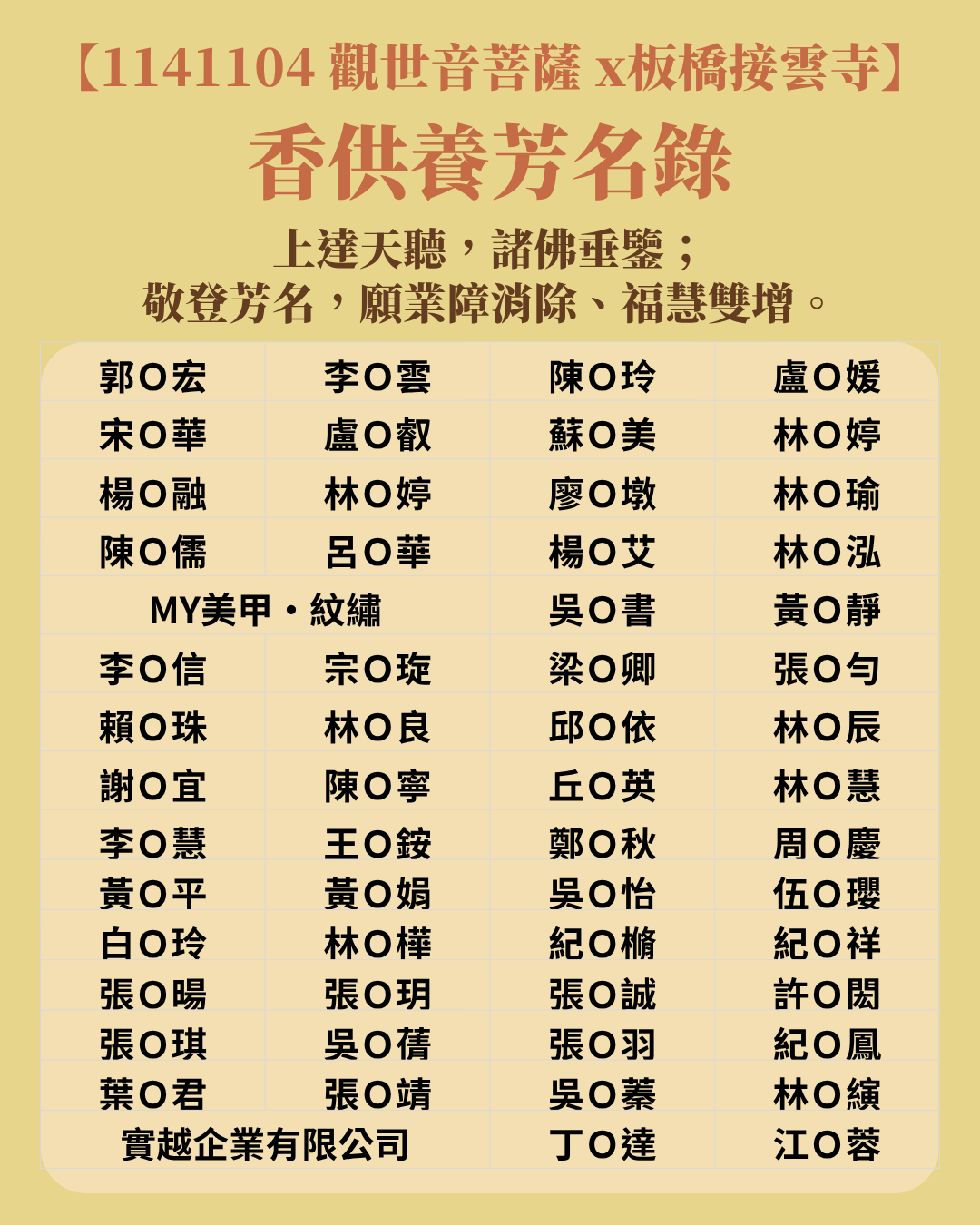 【11/4 接雲寺觀音香供養 功德芳名錄】