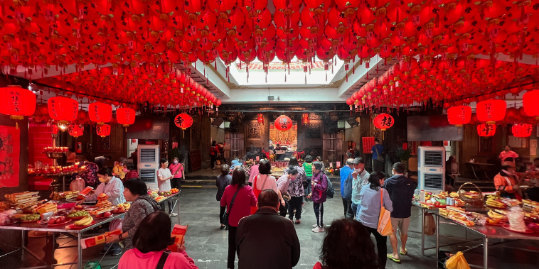 香煙裊裊、人聲鼎沸、供桌滿滿滿...