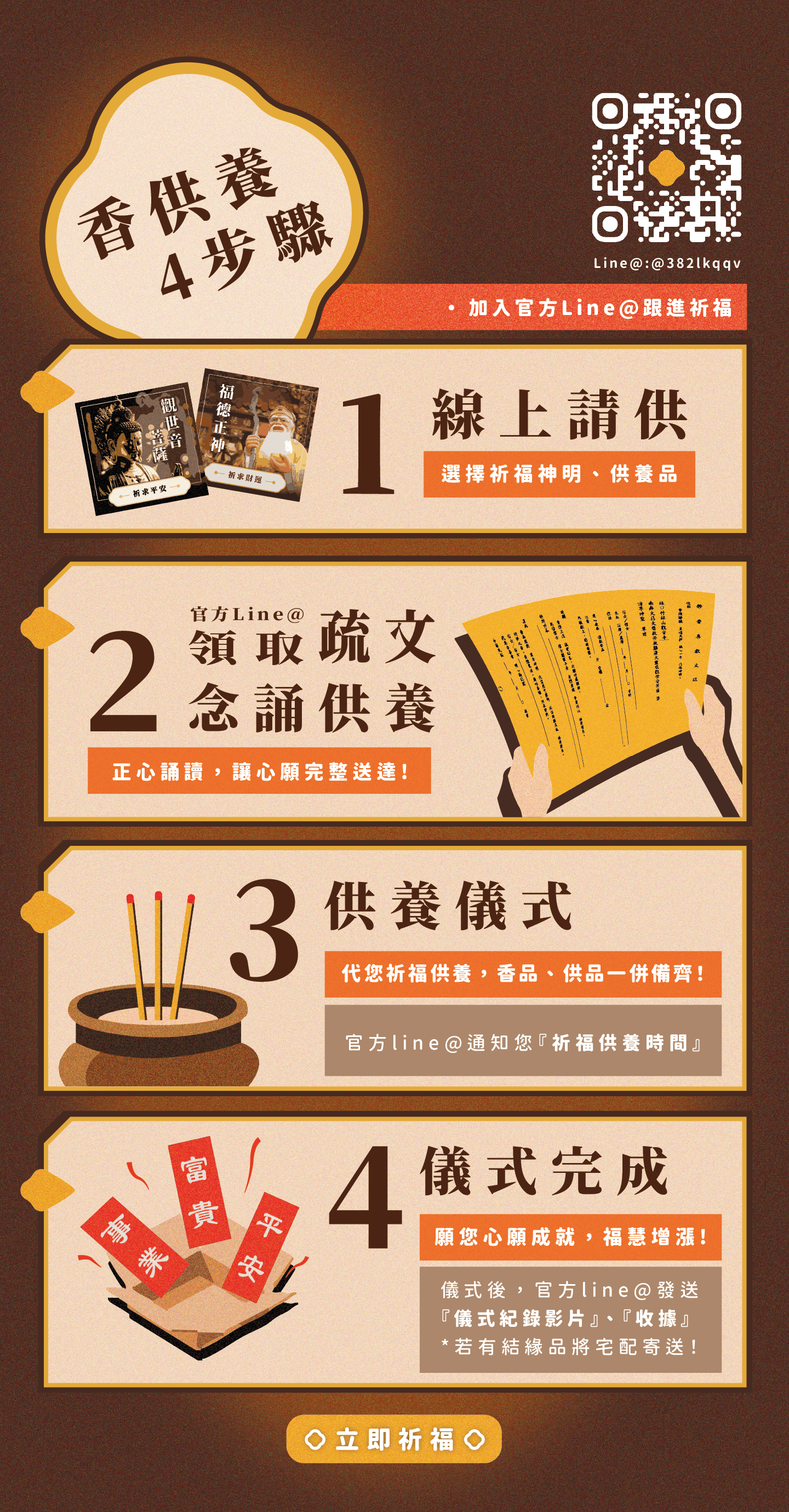 請供後請務必要到 官方LINE 上、留這「領取疏文」,留下您的姓名及手機末四碼。